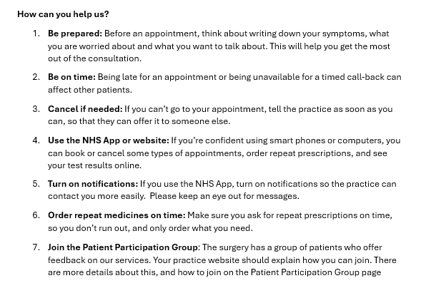 Whether you make your request by phone, on-line or visiting your practice, you may be asked to give your practice some details so that they can assess what is best for you based on your clinical need. The practice team will consider your request for an appointment or medical advice and tell you within one working day what will happen next.